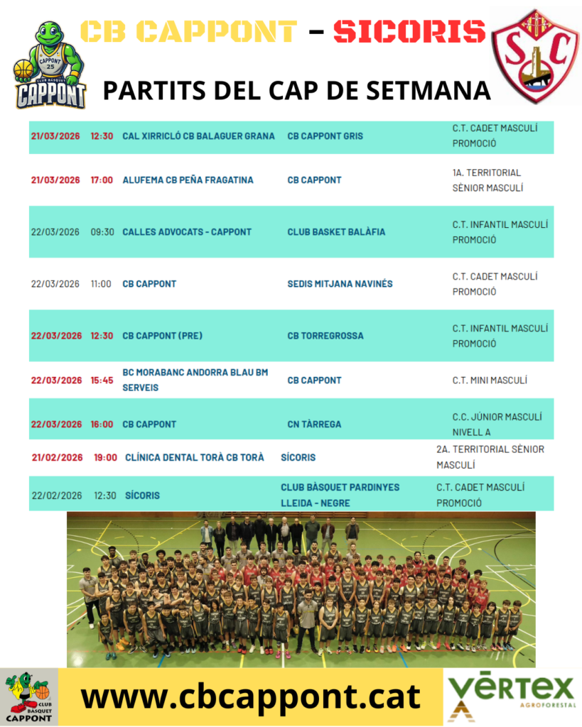 Al CB Cappont, el Mini va perdre 66 – 76 contra el CB Torregrossa. Vam lluitar fins al final i l’equip va donar la cara en tot moment. També vam viure la derrota del preinfantil per 68-80 davant del CB Balàfia, al que cal felicitar per la victòria, amb jugadors i entrenadors mostrant fair play a la pista. El públic no va deixar d’animar durant tot el partit. Destaquem també la victòria de l’Infantil per 70-44 contra el CENG Artesa de Segre, en un bon partit de tot l’equip, amb bona actitud i treball durant tot el matx. L’equip Júnior va viure un partit intens contra l’Andorra amb un marcador final 57– 68. Tot i el resultat, l’equip ha lluitat fins al final i continua treballant per seguir millorant.